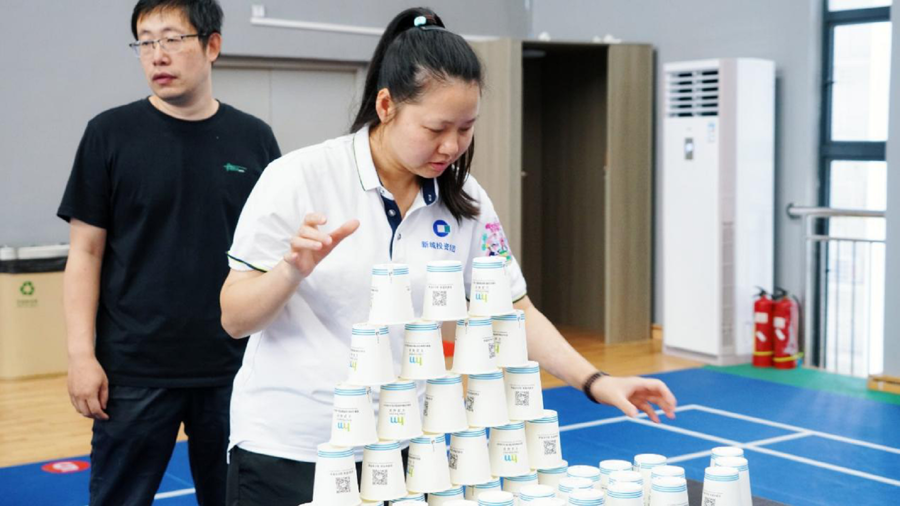 “筑夢(mèng)高塔”環(huán)節(jié)里,壽星們拆搭紙杯搭建高塔,每放置一個(gè)紙杯都全神貫注,一座承載著歡樂與期待的紙杯高塔緩緩成型,現(xiàn)場(chǎng)氣氛緊張又充滿樂趣。
