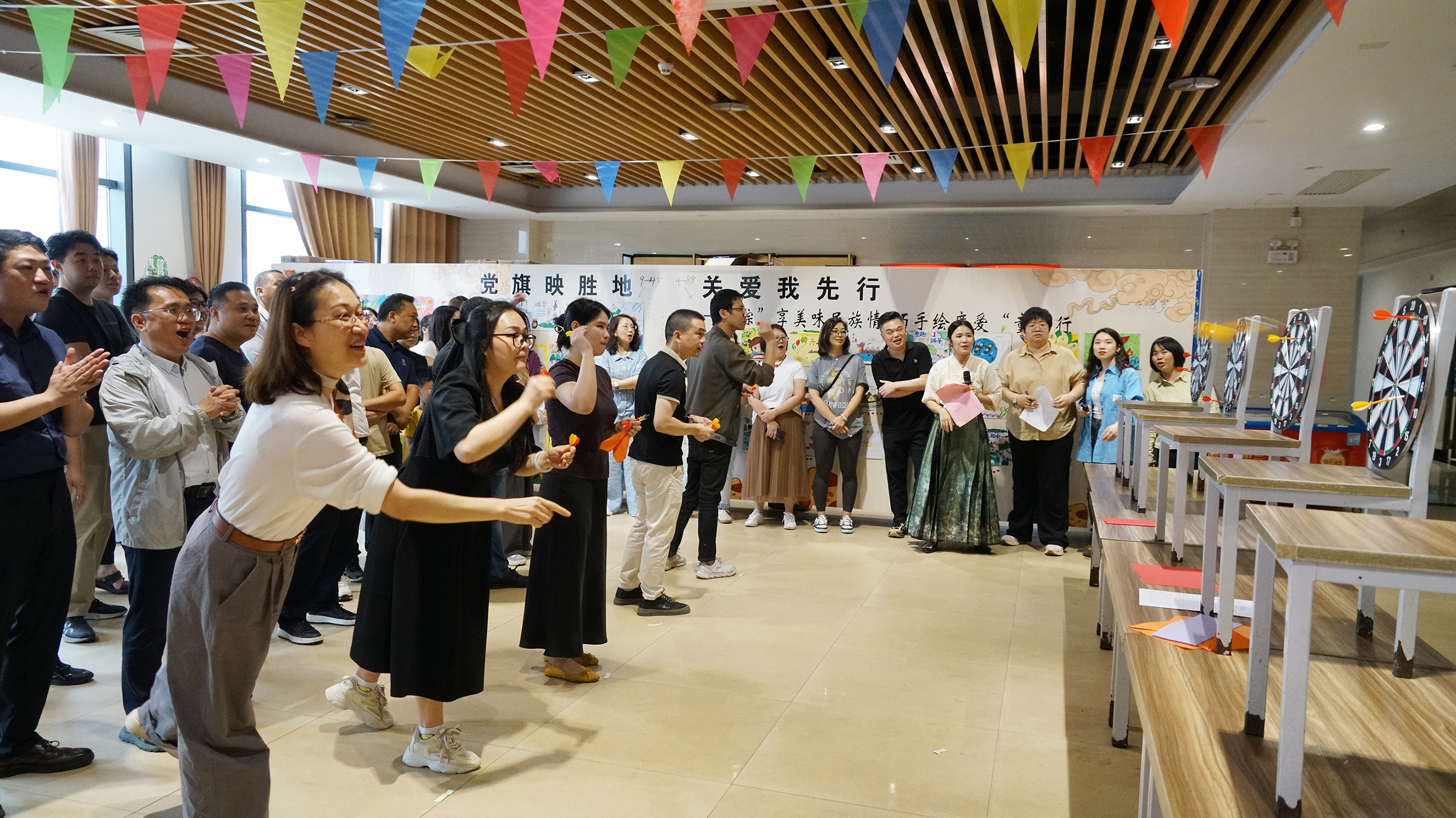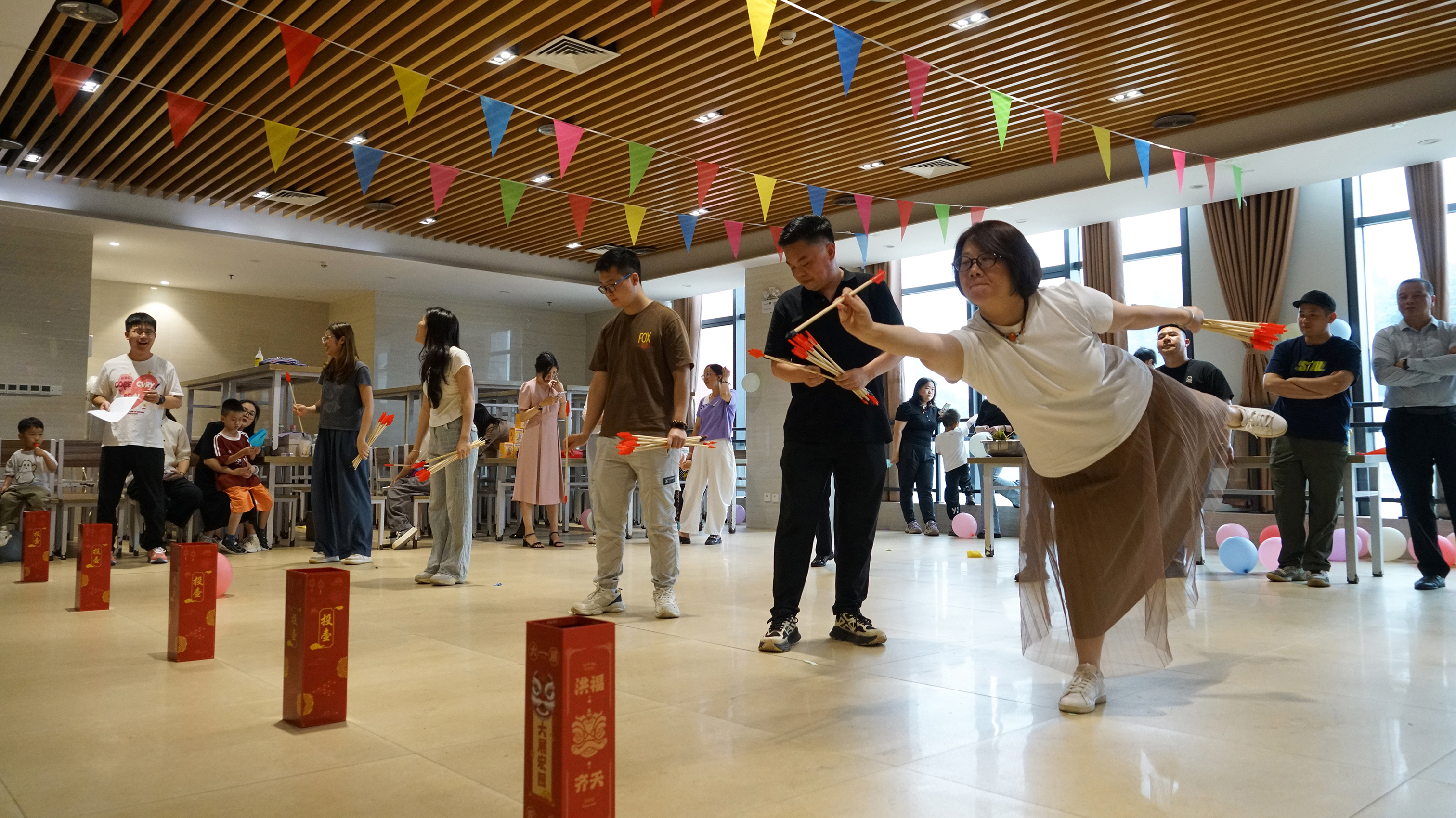 “家企同行·國(guó)風(fēng)非遺——民族文創(chuàng),與‘粽’不‘童’”趣味游戲挑戰(zhàn)環(huán)節(jié),將活動(dòng)氛圍推向高潮。童年紙飛機(jī)、端午射五毒、趣味投壺三大趣味游戲讓職工與孩子都沉浸其中。在童年紙飛機(jī)游戲中,為了能讓紙飛機(jī)飛得更遠(yuǎn)、更久,大家興致勃勃地嘗試著各種折法,隨后用力一擲,紙飛機(jī)在空中劃出一道道優(yōu)美的弧線(xiàn),有的飛得又高又遠(yuǎn),有的則在空中翻轉(zhuǎn)幾圈后穩(wěn)穩(wěn)落地,看著自己折的紙飛機(jī)歡呼雀躍,仿佛回到了無(wú)憂(yōu)無(wú)慮的童年時(shí)光。端午射五毒游戲則充滿(mǎn)了傳統(tǒng)韻味,大家手持飛鏢,瞄準(zhǔn)靶心,每當(dāng)有人射中五毒圖案,周?chē)蜁?huì)響起一陣歡呼聲,大家在歡聲笑語(yǔ)中感受著端午節(jié)的傳統(tǒng)習(xí)俗。趣味投壺游戲更是熱鬧非凡,參與者們瞄準(zhǔn)壺口,或站或蹲,調(diào)整著姿勢(shì)和力度,隨著一次次投中,現(xiàn)場(chǎng)的氣氛也一次次被點(diǎn)燃,歡呼聲、加油聲此起彼伏。歡聲笑語(yǔ)回蕩在整個(gè)活動(dòng)現(xiàn)場(chǎng)。各組成員在比賽中相互配合、相互鼓勵(lì),展現(xiàn)了團(tuán)隊(duì)合作的力量。最終,根據(jù)各組獲得的總分,評(píng)選出冠軍組,大家在歡樂(lè)中感受到了團(tuán)隊(duì)的溫暖與力量。