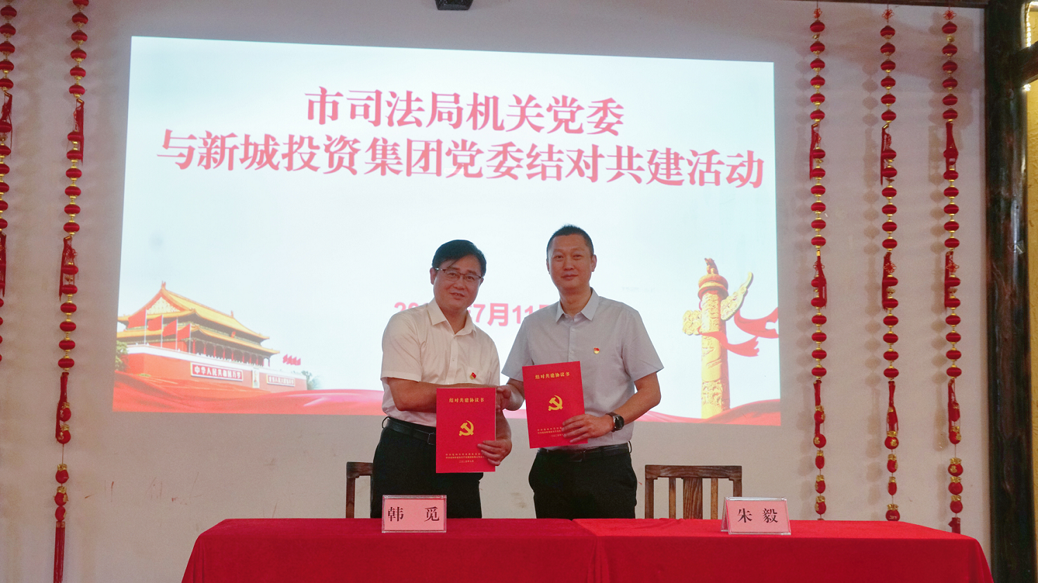 活動最后,市司法局黨組書記、局長韓覓和新城投集團黨委書記、董事長朱毅分別代表雙方黨委簽訂結對共建協(xié)議。以結對共建為紐帶,搭建交流合作的橋梁,發(fā)揮司法局專業(yè)領航作用,指導幫助新城投集團解決“化債最后一公里”難題。